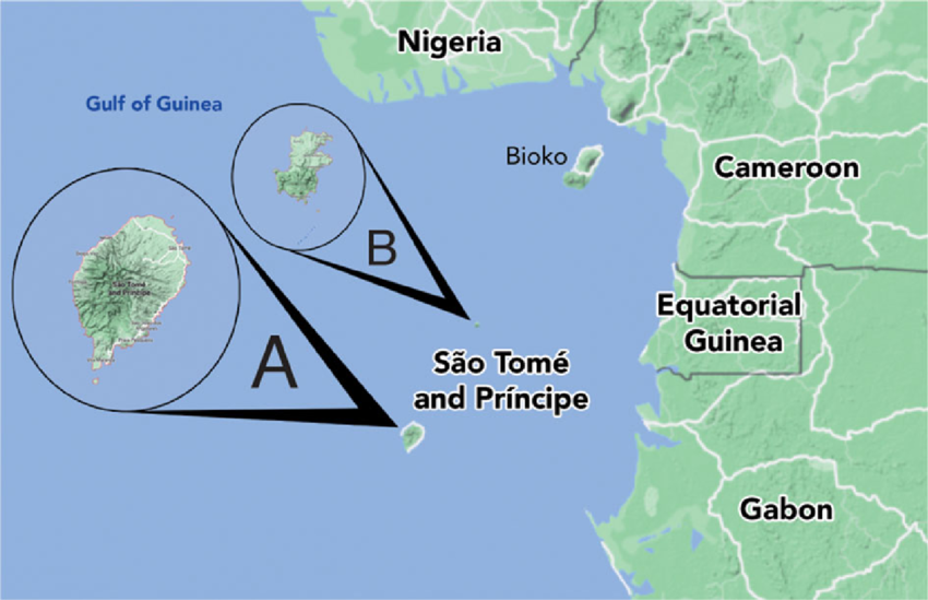 Este país é um arquipélago, com cerca de 220 mil habitantes, composto por 2 ilhas principais, São Tomé (a esmagadoramente maior) e Príncipe.